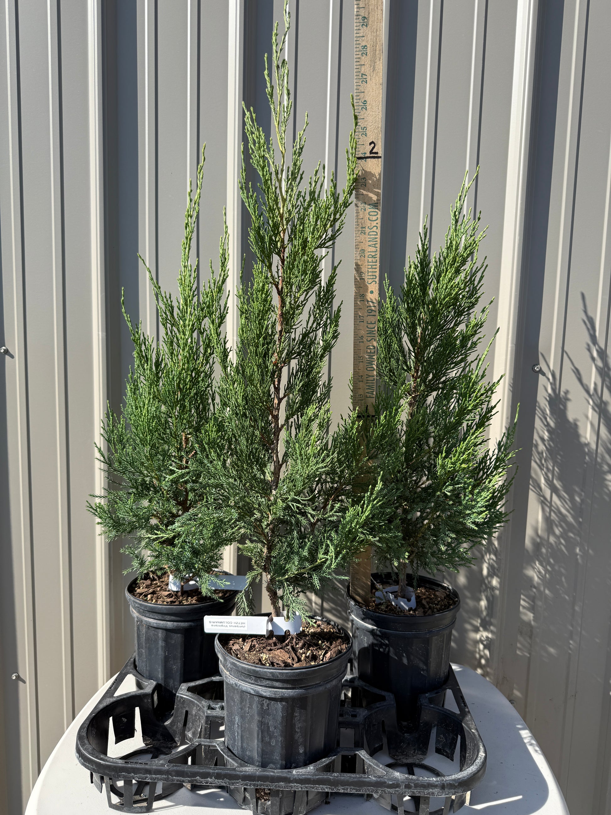 This attractive, dark green, columnar Juniper has a dense, tight growth habit and a vigorous growth rate. It reaches 15 to 18 feet in height and 5 to 8 feet wide. Excellent planted as a background or screen.